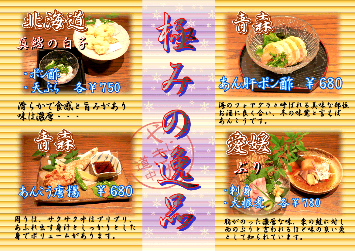 | 鱈の白子まんじゅう豆乳蒸し | 650円 |